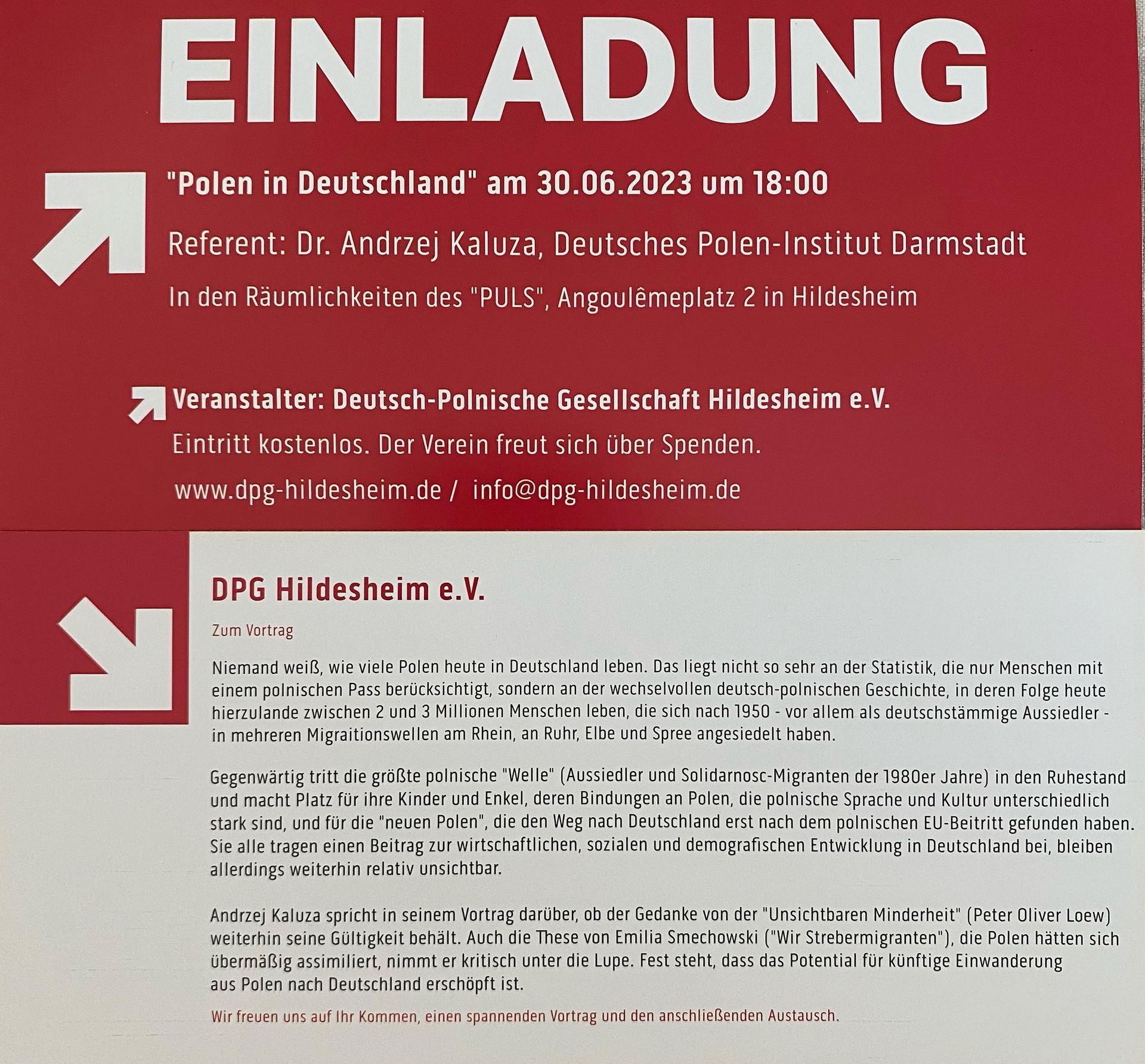 Engagieren Sie sich als Mitglied für die deutsch-polnische Freundschaft, das Erfahren der gemeinsamen Geschichte und eine bewegte Zukunft. Bis auf manche Vorurteile ist Polen für viele Deutsche noch immer der fremde Nachbar. Für viele Polen ist Deutschland Vorbild und bevormundender Nachbar zugleich. Zusammen stellen wir die Gemeinsamkeiten und die Vielfalt in den Mittelpunkt.